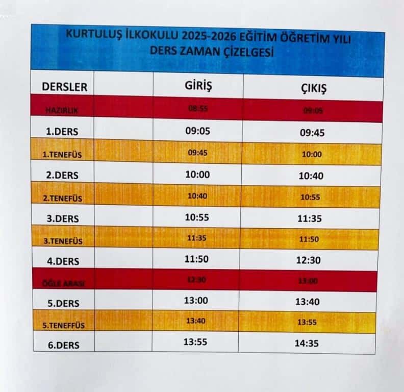 OKUL GİRİŞ ÇIKIŞ SAATLERİMİZ